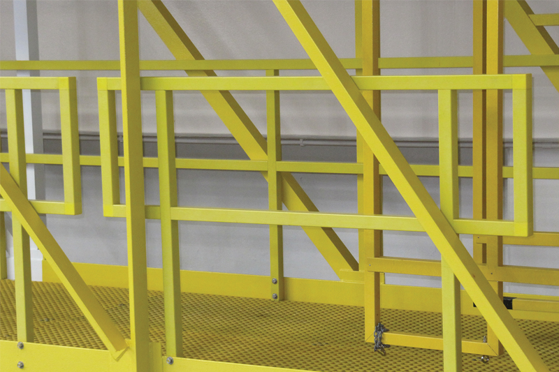 • Safety Features - Fiberglass grating handrail systems come in a highly visible yellow color and feature low electrical conductivity, as well as high strength.