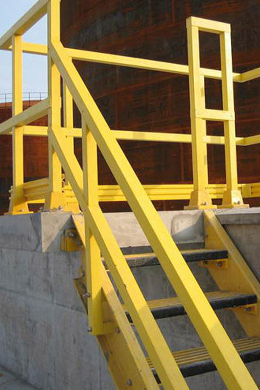 Our fiberglass grating railing systems withstand corrosive environments, such as those found in industrial, chemical and wastewater treatment plants, as well as commercial structures with urban and salt air. Unlike traditional materials, such as stainless steel, galvanized steel and pressure treated lumber, pultruded fiberglass can be customized to meet specific corrosion requirements.